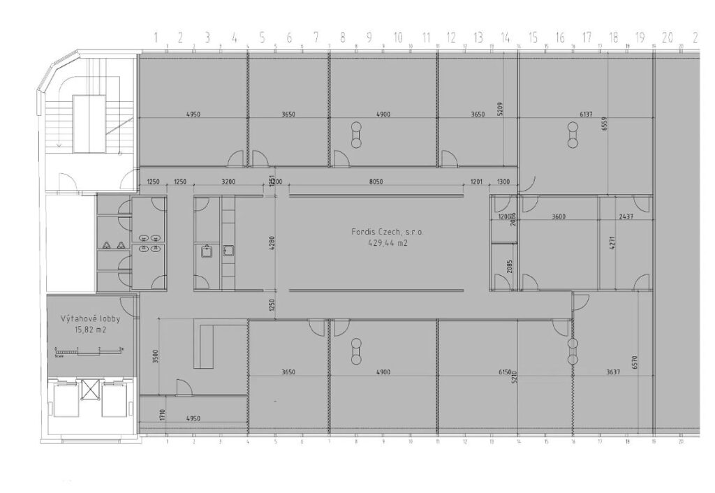 - Moderní technické zázemí – klimatizace, otevíratelná okna, zdvojené podlahy, recepce, 24/7 přístup