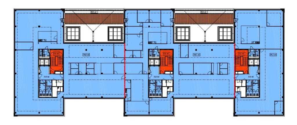 Sedmipodlažní budova Gen má pravidelný obdélníkový tvar. Čekají vás v ní kancelářské prostory o ploše více než 9 000 m2 a několik teras s výhledem na přilehlé okolí. Najdete v ní také podzemní garáže, plně vybavenou kolárnu nebo maloobchodní prostory.
