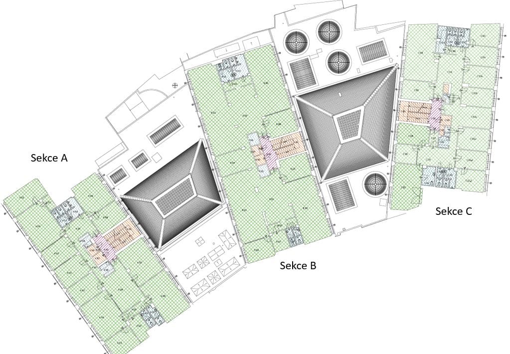 - Flexibilní kancelářské prostory – pronájem kanceláří od 100 m² do 648 m² s možností individuálního uspořádání