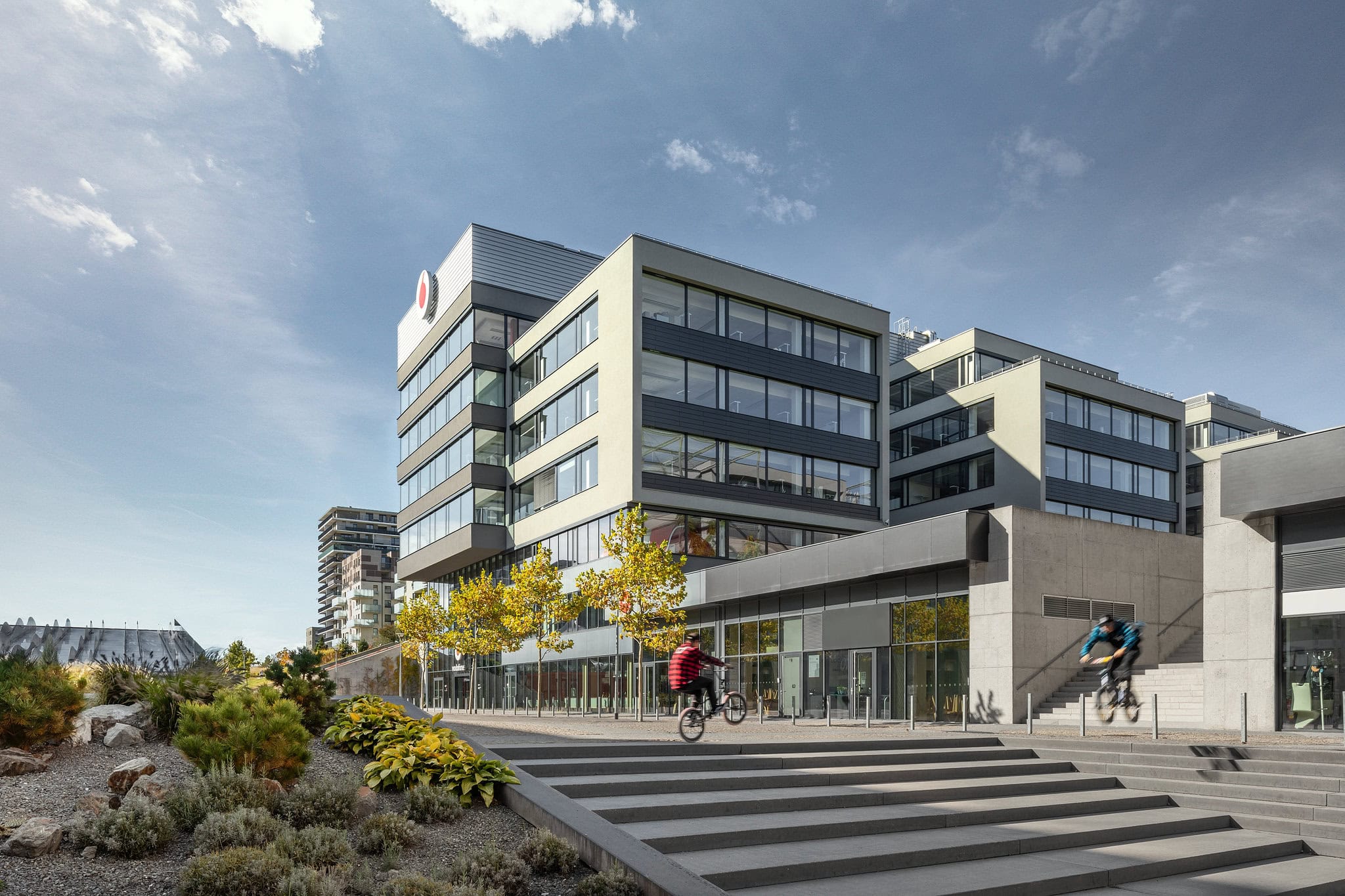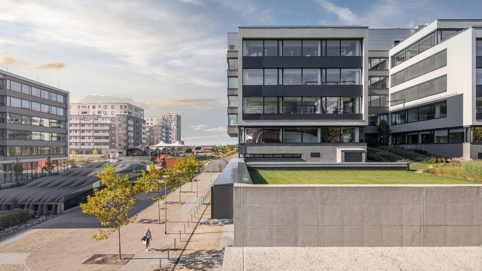 V okolí budov se nachází široká škála služeb, které zvyšují komfort zaměstnanců i návštěvníků. V pěší dostupnosti jsou restaurace, kavárny, obchody, lékárny, fitness centra i hotely vytvářející ideální podmínky pro pracovní i neformální setkání. Komplex je zasazen do pěší zóny, což přispívá k příjemné atmosféře a možnosti relaxace během dne.