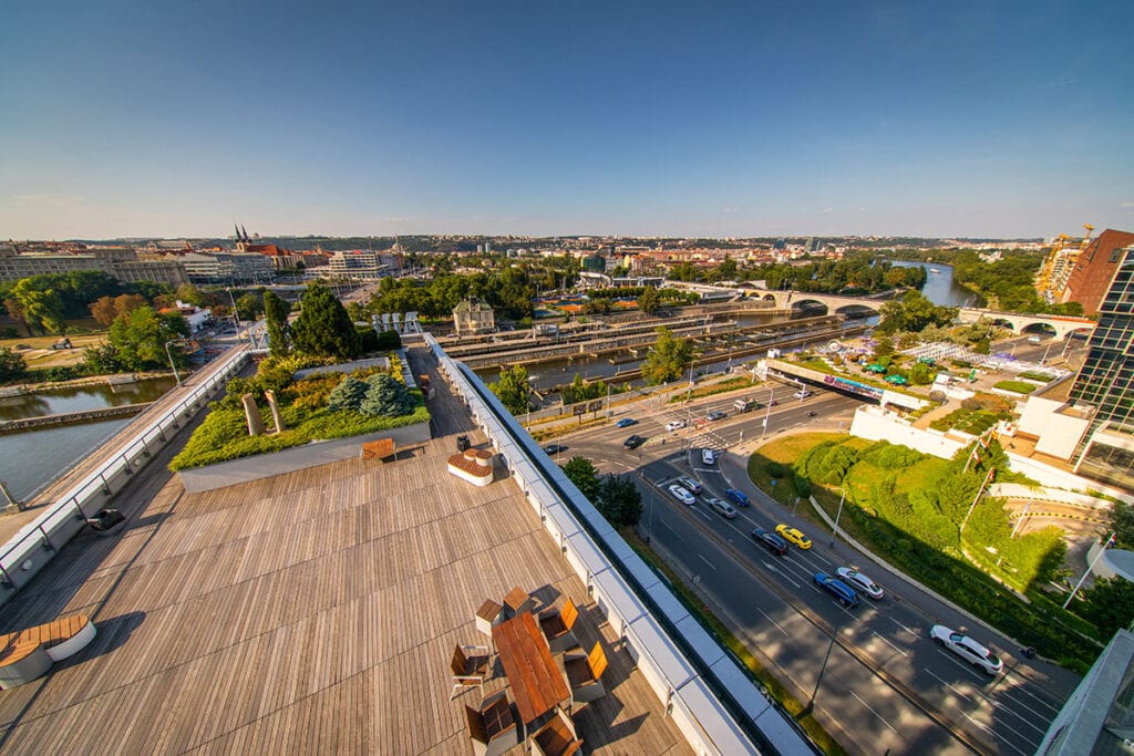 - Terasy s panoramatickým výhledem – ideální pro relaxaci i pracovní schůzky