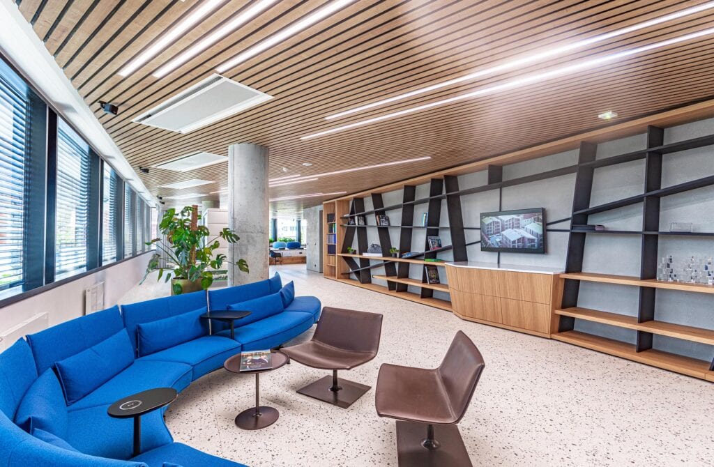 V docházkové vzdálenosti je dále dostupná kompletní občanská vybavenost, včetně zdravotnických zařízení, lékáren, pošty, bank, obchodů s potravinami i mateřských škol, což vytváří ideální prostředí pro zaměstnance s rodinami i mezinárodní týmy.