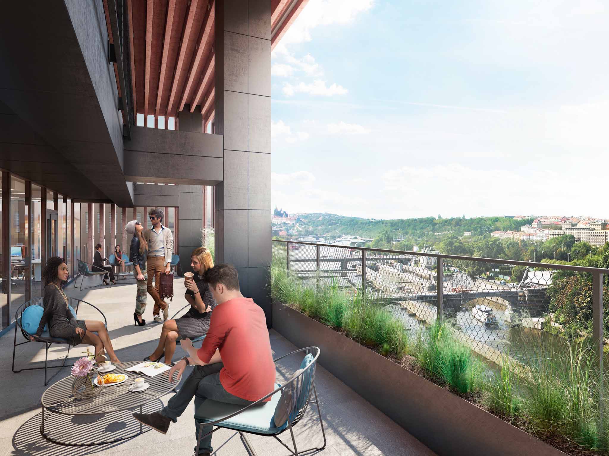 Administrativní komplex River City Prague se nachází v atraktivní lokalitě obklopené zelení prakticky přímo u řeky Vltavy s výhledem na Pražský hrad. Karlín je dynamicky se rozvíjející pražská čtvrť s velmi dobrou infrastrukturou a dostupností včetně napojení na cyklistickou stezku. Stanice metra a tramvaje Křižíkova je vzdálena 7 minut chůze. V blízkém okolí se nachází široký výběr restaurací, kaváren a kulturního vyžití.