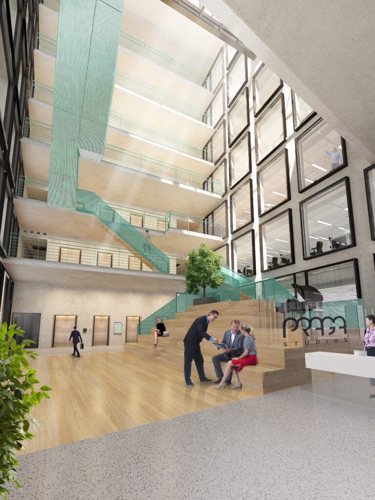 Praga Studios je projektem, kde se business mísí s uměním. Budova jako taková tedy nabídne nejen nejmodernější kanceláře, ale také zázemí pro kulturu. Projekt s celkovou nájemní plochou téměř 12,000 m2 a sedmi podlažími nabízí nejen nejmodernější kancelářské prostory, ale i atrium, jehož inteligentní design umožní pořádání koncertů, divadelních představení a uměleckých výstav.