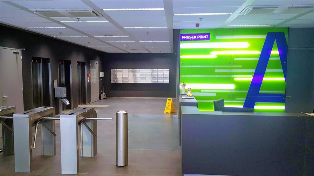 Moderní komplex tří kancelářských budov s vlastním parkem, piazzettami mezi jednotlivými budovami, obchody, restaurací a kavárnou. Administrativní centrum Prosek Point je tvořeno třemi samostatnými osmipatrovými budovami a nabízí 26 200 m2 komerčních ploch.