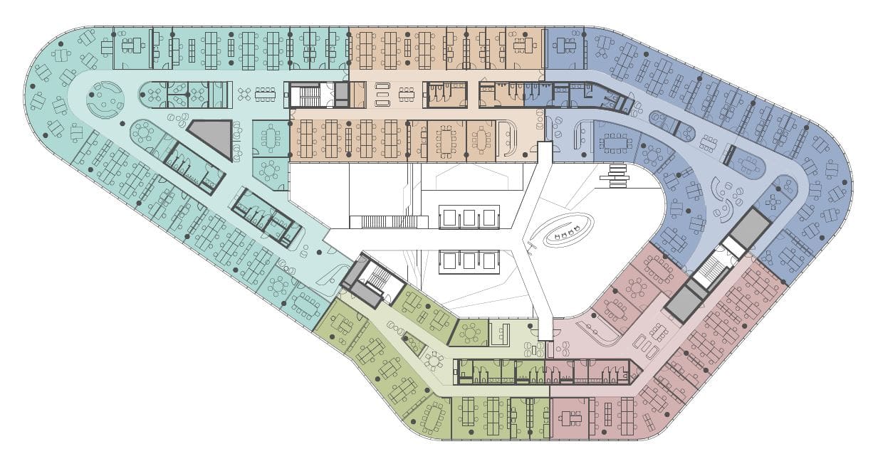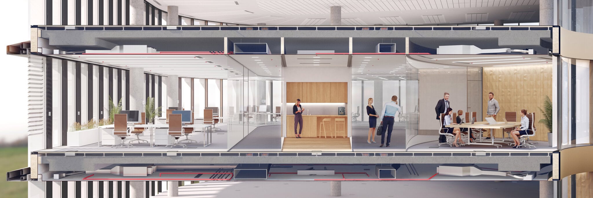 Kanceláře ve vysokém standardu lze přizpůsobit individuálním potřebám nájemců – od open space až po menší kanceláře. Prostory jsou vybaveny zdvojenými podlahami, podhledy, klimatizací, ventilací a žaluziemi, což zajišťuje maximální komfort i efektivní provoz. Součástí budovy je centrální recepce, nonstop ostraha, přístup na karty a sprinklerový systém dle nejnovějších bezpečnostních norem. Samozřejmostí je nepřetržitý přístup 24/7.