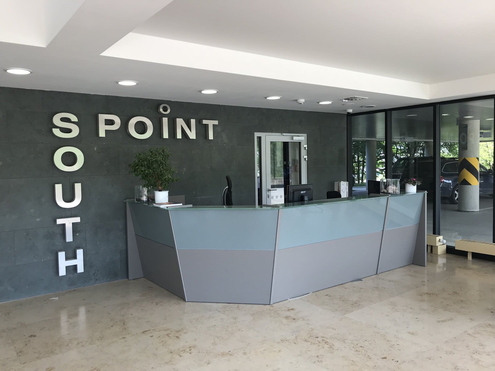 Budova South Point vyniká svou jedinečnou pozicí a originálním designem. Nabízí k pronájmu flexibilní kancelářské prostory, které lze dispozičně upravit dle individuálních požadavků. Centrální recepce, nepřetržitá bezpečnostní služba a další služby. Jednotky disponují vlastním nebo společným příslušenstvím WC v závislosti na uspořádání. Ve vyšších patrech jsou nájemcům k dispozici terasy.